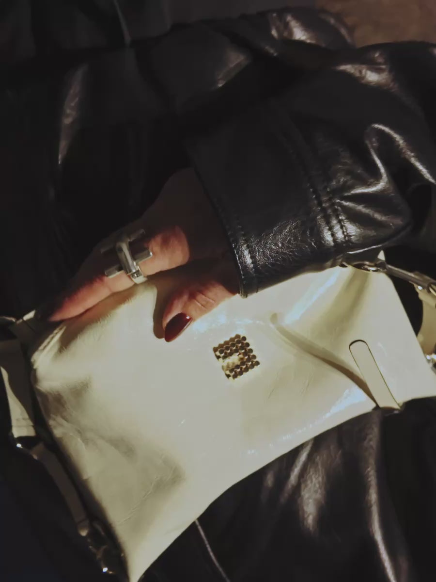 Charly Mini Crinkle Patent is compact, licht en opvallend modern, met een glanzend, gekreukt patentleer dat moeiteloos van overdag naar ’s avonds past. De strakke, stijlvolle vorm geeft elke look een subtiel statement.